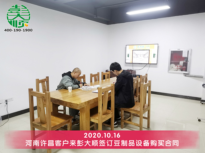 徐老板就擔(dān)心自己買了豆腐機(jī)設(shè)備但是做不出來好味道,到了彭大順現(xiàn)磨豆腐坊之后,現(xiàn)場品嘗了解后一切擔(dān)憂都解決了,于是愉快的與彭大順簽單達(dá)成合作,訂購小型豆腐機(jī)一套!