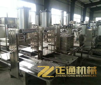 ?正通豆腐機采用不銹鋼材質(zhì),堅固耐用,外形美觀,產(chǎn)品是經(jīng)過國家檢測局合格檢測過的,機器一機多用,可同時生產(chǎn)單色豆腐,嫩豆腐,老豆腐,多彩豆,單色豆腐皮,多色豆腐皮,豆腐干,多彩素雞,豆?jié){,豆腐花等豆制品,還可以與其他設(shè)備和工藝配套生產(chǎn)更多的豆制品!正通豆腐機方便快捷,采用自動放漿,無需用泵吸出,節(jié)省占地面積,減少故障點,點腦桶為活動式,簡捷方便,省時省力,從原料進機到出成品,只需30分鐘!?